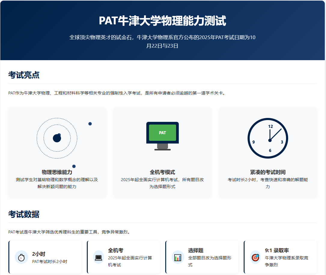 全球顶尖物理英才的试金石,牛津大学物理系官方公布的2025年PAT考试日期为10月22日与23日