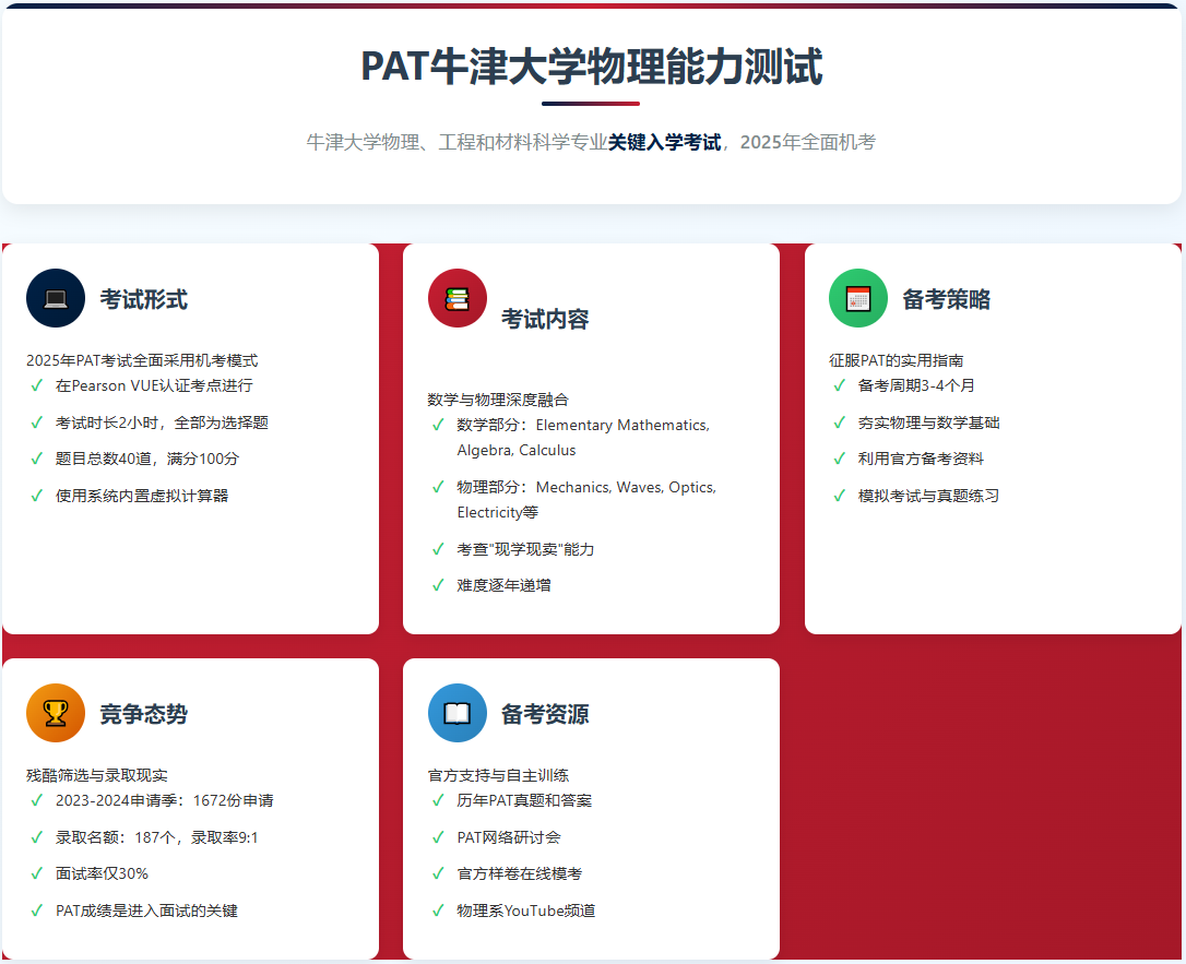 PAT(Physics Aptitude Test)作为牛津大学物理、工程和材料科学等相关专业的关键入学考试,2025年的考试已全面采用机考模式,为全球申请者设置了新的挑战与机遇。